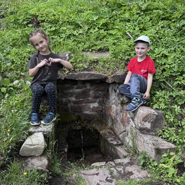 Cestu nahoru jsme zvládli bez potíží, výšlap byl příjemný, a nahoře nás čekala zasloužená pauza. Dali jsme si něco dobrého, děti si pohrály, poběhaly kolem a užily si přírodu.
